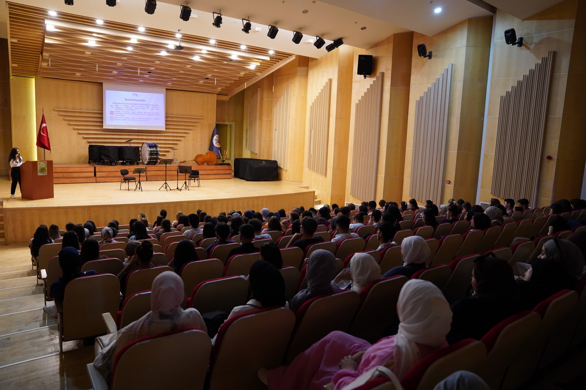 Etkinlikler, Nevit Kodallı Oda Müziği Uygulama ve Araştırma Merkezi’nde düzenlenen “1 Ekim Dünya Yaşlılar Günü Paneli” ile devam etti. Kısa bir müzik dinletisiyle başlayan panelin açış konuşmasını, Sağlık Hizmetleri Meslek Yüksekokulu Müdürümüz Prof. Dr. Gülay Altun Uğraş yaptı. Prof. Dr. Altun Uğraş konuşmasında; “Yaşlılık, yalnızca biyolojik bir süreç değil; aynı zamanda bireylerin toplumsal rolleri, sosyal ilişkileri ve yaşam kalitesi üzerinde derin etkiler yaratan çok boyutlu bir dönemdir. Büyüklerimiz, toplumların kolektif hafızası, kültürel mirasın taşıyıcıları ve aynı zamanda bizlere yön veren değerli yaşam rehberleridir.” ifadelerini kullanarak yaşlılığın yalnızca biyolojik bir süreç olmadığını vurguladı.