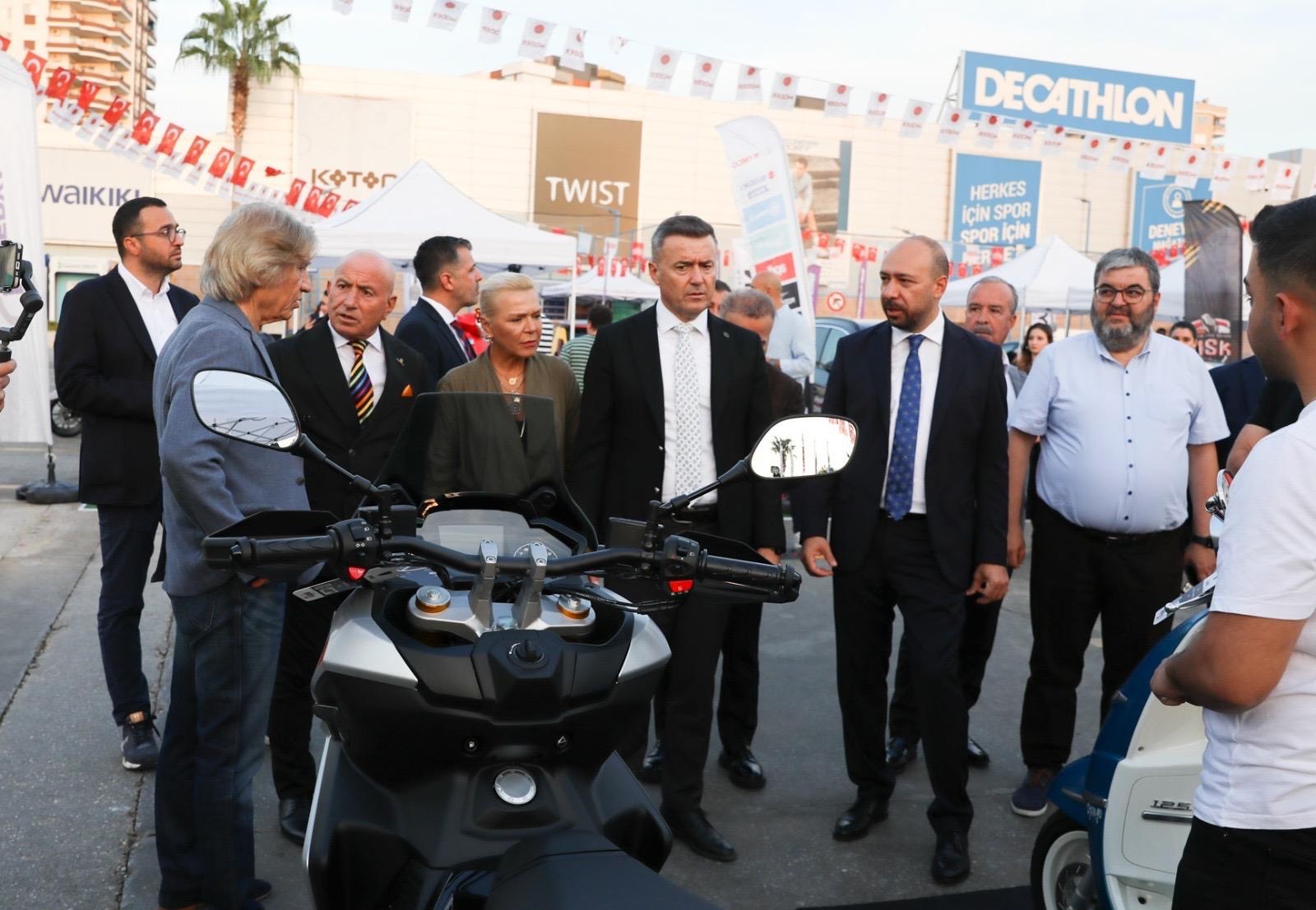 Festival açılış konuşmaları sonrası kurdeleyi keserek festivali başlatan kent protokolü ardından stantları ziyaret ederek araçlar hakkında bilgi aldı.