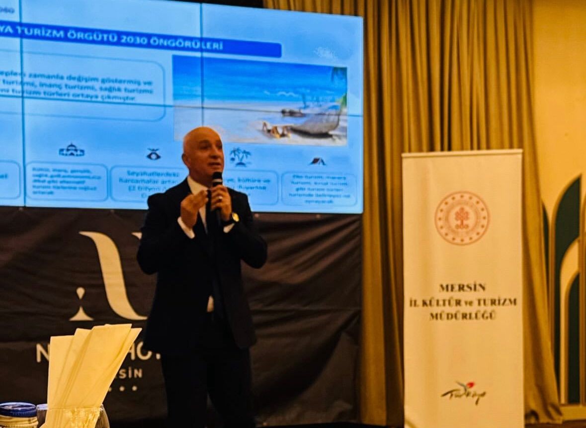 Turizm sektörünün çeşitli paydaşlarının yer aldığı toplantıda, Mersin İl Kültür ve Turizm Müdürü Sayın Hakan Doğanay tarafından kapsamlı bir sunum gerçekleştirildi. Sunumun ardından katılımcılara söz hakkı verilerek, sektörün mevcut durumu ele alındı; talep ve beklentiler ile çözüm odaklı öneriler çerçevesinde karşılıklı fikir alışverişinde bulunuldu.